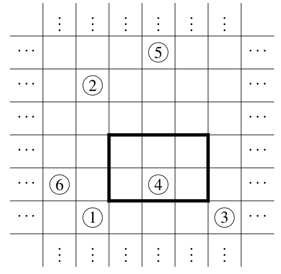 JOI 先生有 枚硬币。初始时,第 枚 硬币被放在坐标为 的格子里。JOI 先生的目标是在每个满足 的格子 上恰好放一枚硬币。为了不损坏硬币,他能做的唯一一个操作是钦定一枚硬币然后将其移动到相邻的一个格子中(我们说两个格子相邻,当且仅当这两个格子有公共边)。在移动硬币的过程中,允许两个硬币处在同一个格子中。JOI 先生希望通过尽量少的操作次数完成目标。
