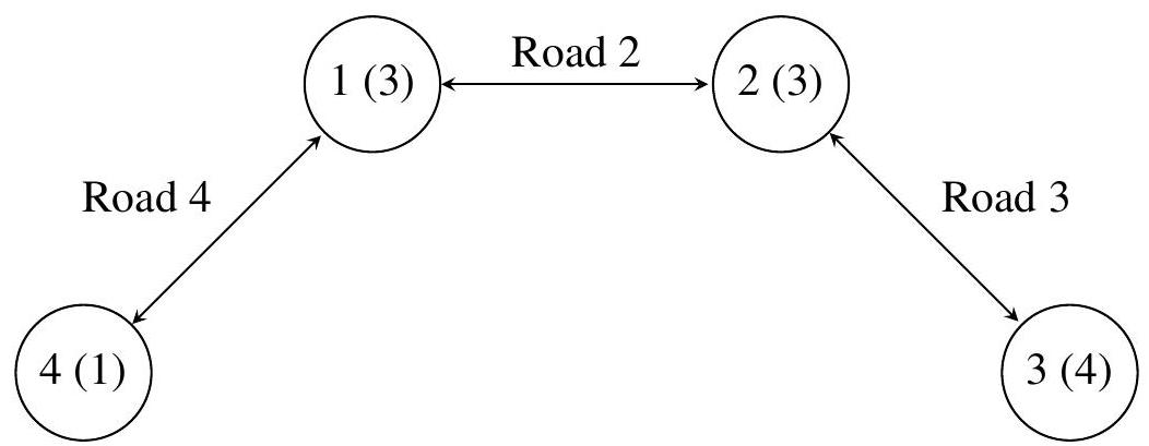 如下图所示,圆圈表示城市,数字表示该城市的人口数量。第一幅图展示了道路的初始状态,第二幅图展示了所有道路变成高速公路之后的情况。