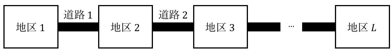 JOI 岛是由东西一列排列的 L 个地区组成,每个地区从西边开始按顺序编号为 1 到 L。另外,JOI 岛上有 L−1 条道路,具体来说,对于每个 1≤i≤L−1,地区 i 和地区 i+1 之间有一条双向的道路。这里,地区 i 和地区 i+1 之间的道路被称为道路 i。