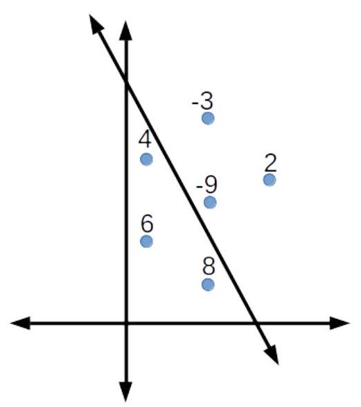 你知道每个兔子的位置和它们代表的善意值:好兔子是正数,坏兔子是负数。没有两只兔子会在同一个地方。 现在你要用一条直线把它们分成两组,让一边的兔子善意值总和尽可能大。这条直线上的兔子,它的善意值会同时算到两边去。