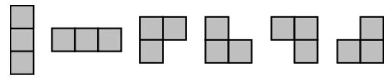 在可能持续数月的干旱期间,Sara 使用喷灌器来保持农作物的水分。她的每个喷灌器有三个喷嘴:一个主喷嘴和两个侧喷嘴。每个喷灌器恰好占据三个单元格,并为这三个单元格提供水源。侧喷嘴总是占据与主喷嘴相邻的两个单元格(上下左右)。因此,一个喷灌器总是处于以下配置之一: