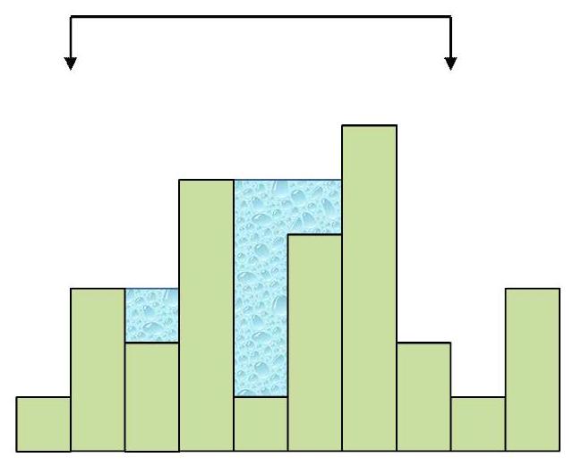 行星的某个区域是一个只有上下和左右方向的二维平面。在这个区域内,有 棵仙人掌排成一行。每棵仙人掌的宽度都是 米,但高度可能不同。为了美化环境,只保留从第 棵仙人掌到第 棵仙人掌,当降雨量充足时,仙人掌上方的空隙中会积水。如下图所示,下图中箭头指示的范围外的仙人掌可以忽略。