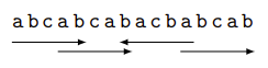 Bajtazar 可以订购模板 abcab,附赠模板为 bacba。通过合理摆放这两个模板,即可拼出输入的文字。箭头显示应该将哪个模板(订购的和附赠的)应用到墙上,以获得输入中的文字。