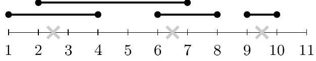 为此,他决定更系统地解决问题。他选出 条最热门的乘客路线,每条路线以一对 表示,意为乘客在车站 上车, 下车。Bajtazar 希望以最少的查票次数,确保每条路线上的乘客至少被查一次,即每条路线 至 间至少有一次查票。查票不得在车站停靠时进行。