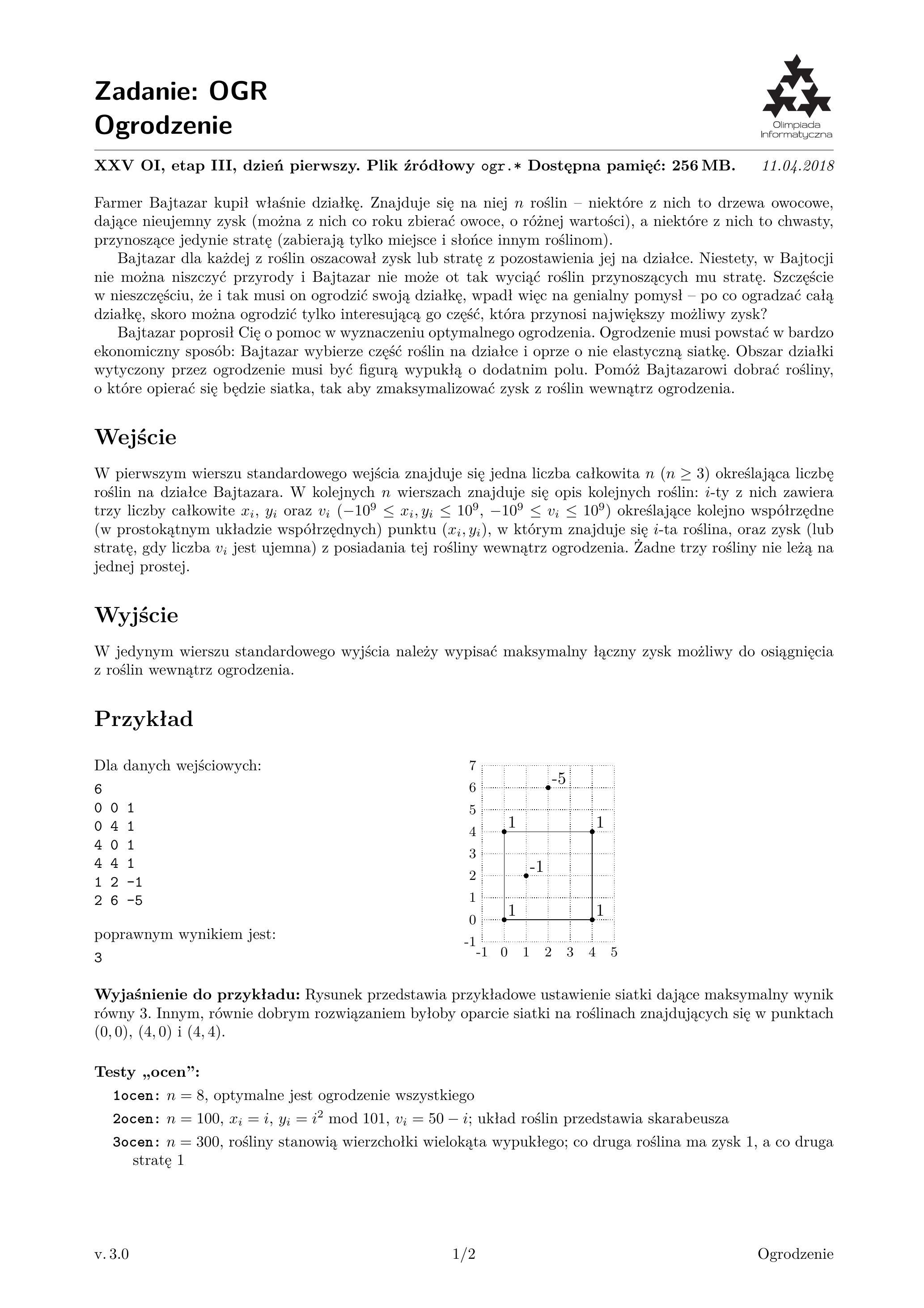 题目译自 XXV Olimpiada Informatyczna — III etap Ogrodzenie