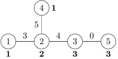 图中圆圈内数字为站点编号,粗体数字为餐厅菜系,边为路线,边上数字为票价。