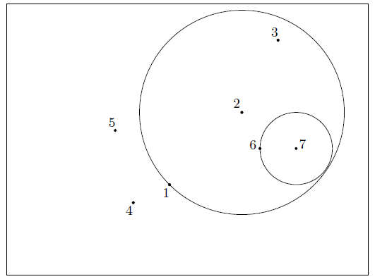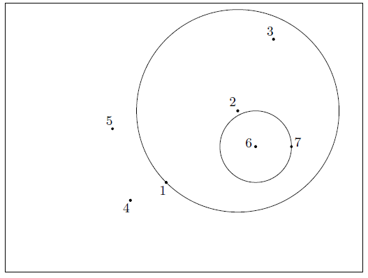 在此图中,符合 K 理事长设计候选条件的 颗星星 的选择方式有 种。每种情况下的圆 和 如问题描述中的图示所示。