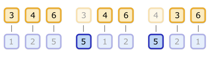 在第一个样例中,英雄和怪物的力量如下图所示。英雄在上方,怪物在下方,方框内的数字表示对应英雄或怪物的力量。