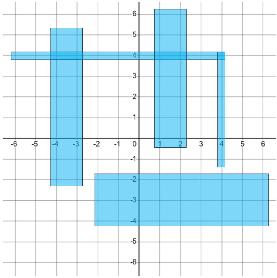 | $n \leq 100,-400 \leq a[i] \leq b[i] \leq 400,-400 \leq c[i] \leq d[i] \leq 400,-400 \leq x[j], y[j] \leq 400$ | |||