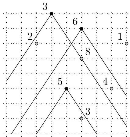 接下来的 行以类似方式描述保安位置(其中 表示贿赂第 名保安所需的拜特币金额)。每个点最多只能有一个保安或展品。