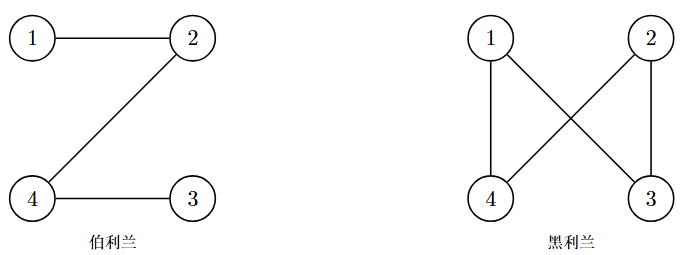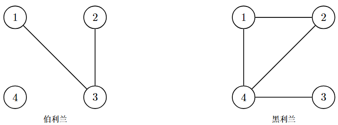 在一个平行宇宙中,有一个类似的国度——黑利兰,也由 个城市组成。黑利兰同样每对城市之间也恰好有一条道路。两国的区别仅在于电力节约政策:黑利兰照亮了 条道路,其中第 条道路连接城市 和 。已知在黑利兰可以通过仅使用照明的道路从任意城市到达任意其他城市。