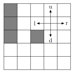 l、u、r或d。 - 表示向左、向上、向右或向下移动并改变格子颜色的操作,分别使用大写字母