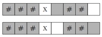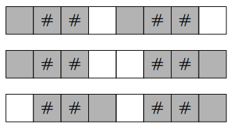 游戏在一个包含 个格子的网格上进行,放置 艘船,每艘船占用 个格子。所有合法的船只放置方式如下图所示。标记为 # 的格子为必然被占用的格子,共有 个。