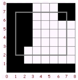 以下是第一个样例中平面的一部分示意图。黑色矩形是被猫弄脏的平面部分,灰色区域是奥莉娅为笔记选择的区域。